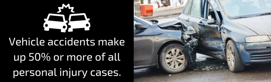 It may not come as a surprise that vehicle accidents are among the most common types of personal injury claims, given the millions of vehicles and drivers on the roads daily. In 2018, the National Highway Traffic Safety Administration (NHTSA) reported nearly 7 million vehicle accidents that police officers documented. This is a large category that includes vehicles of all kinds: Cars, trucks, motorcycles, bicycles, trains, Uber/Lyft, pedestrians (when they come into contact with vehicles), and buses–if it travels and can carry cargo or passengers, it can fall into this category. Vehicle accidents make up 50% or more of all personal injury cases.
